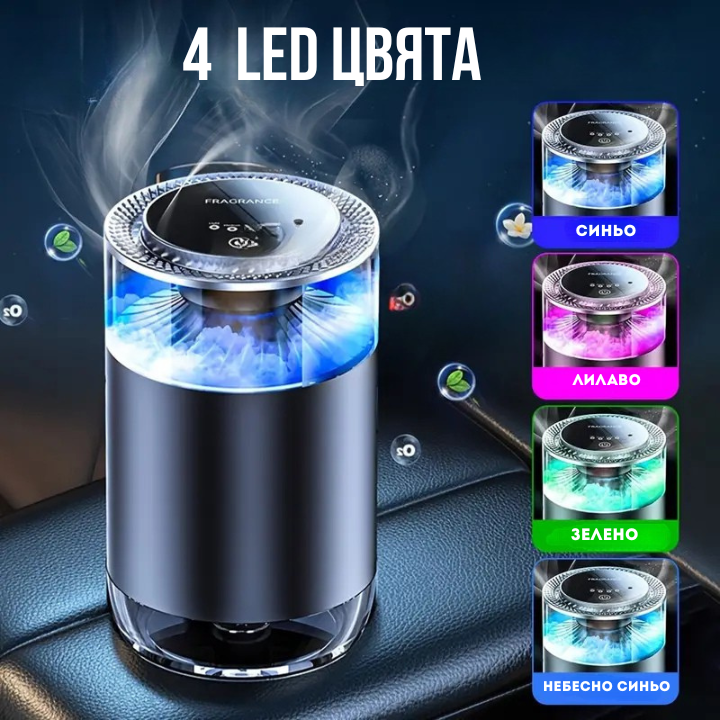 Избери от 4 елегантни LED цвята, които добавят уникален стил към интериора на твоя автомобил. Всеки нюанс е внимателно подбран, за да подчертае премиум качеството и създаде усещане за изтънченост. С AromaDrive всеки път е изпълнен с елегантност и лукс, отразявайки твоята индивидуалност и вкус.